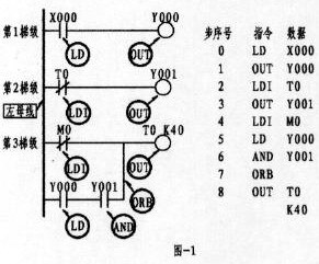 這一道題往往是初學者邁不過的一道坎。這主要是因為繼電器電原理圖使用的是復合按鈕,形成的思維定式所造成。從梯形圖中可以看出,X001為點動控制觸點,因左邊的電原理圖是使用的復合按鈕,思維上自然而然轉向了采用X001的常閉觸點,與X001的常開形成了與復合按鈕相似的效果,想象是不錯。要知道PLC在運行狀態下,是以掃描的方式按順序逐句掃描處理的,掃描一條執行一條,掃描的速度是極快的。如果是用X001的常閉代替M0的常閉的話,當按下外接點動按鈕時,X001常開觸點則閉合而常閉接點則斷開,但一旦松手其常閉觸點幾乎就閉合形成了自保,因此失去了點動的功能,變為只有啟動的功能。梯形圖中的第一梯級中的第二支路是由Y000的常開與中間繼電器M0的常閉相串后再與第一支路相并,在這樣觸點多的情況下如果允許應將它擺列在第一行,這樣在編程時可以少用了ORB指令。