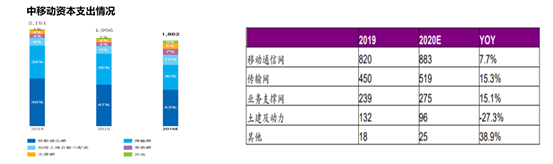 中國(guó)移動(dòng)2020年資本開(kāi)支計(jì)劃為人民幣1798億元,同比2019年資本支出大幅提高了8.38%;中國(guó)電信2020年計(jì)劃資本支出達(dá)850億,同比大幅提高9.6%;中國(guó)聯(lián)通2020年計(jì)劃資本支出達(dá)700億,同比大幅提高24.07%。可以從以上數(shù)據(jù)看出,隨著5G牌照的發(fā)放,中國(guó)的5G建設(shè)將會(huì)延續(xù)4G建設(shè)的周期和強(qiáng)度,在未來(lái)的3-5年內(nèi),以新基建中骨干力量的姿態(tài),撐起中國(guó)經(jīng)濟(jì)和中國(guó)電子信息行業(yè)的一面大旗。